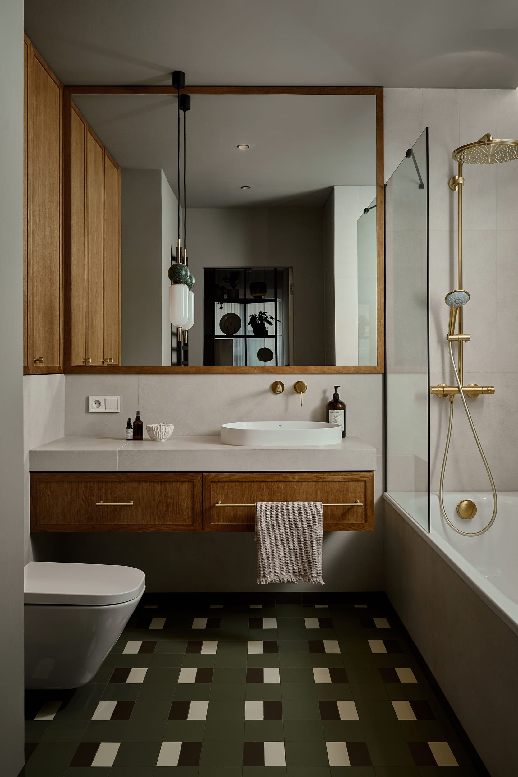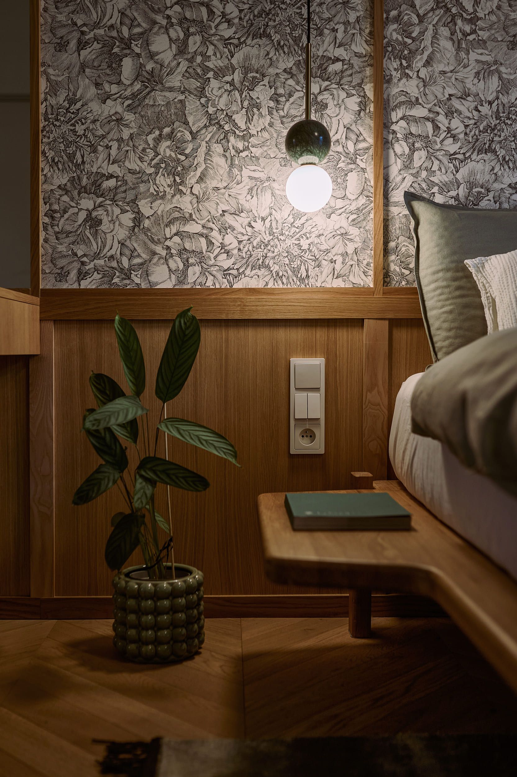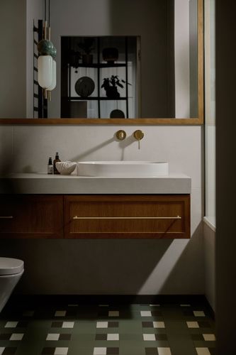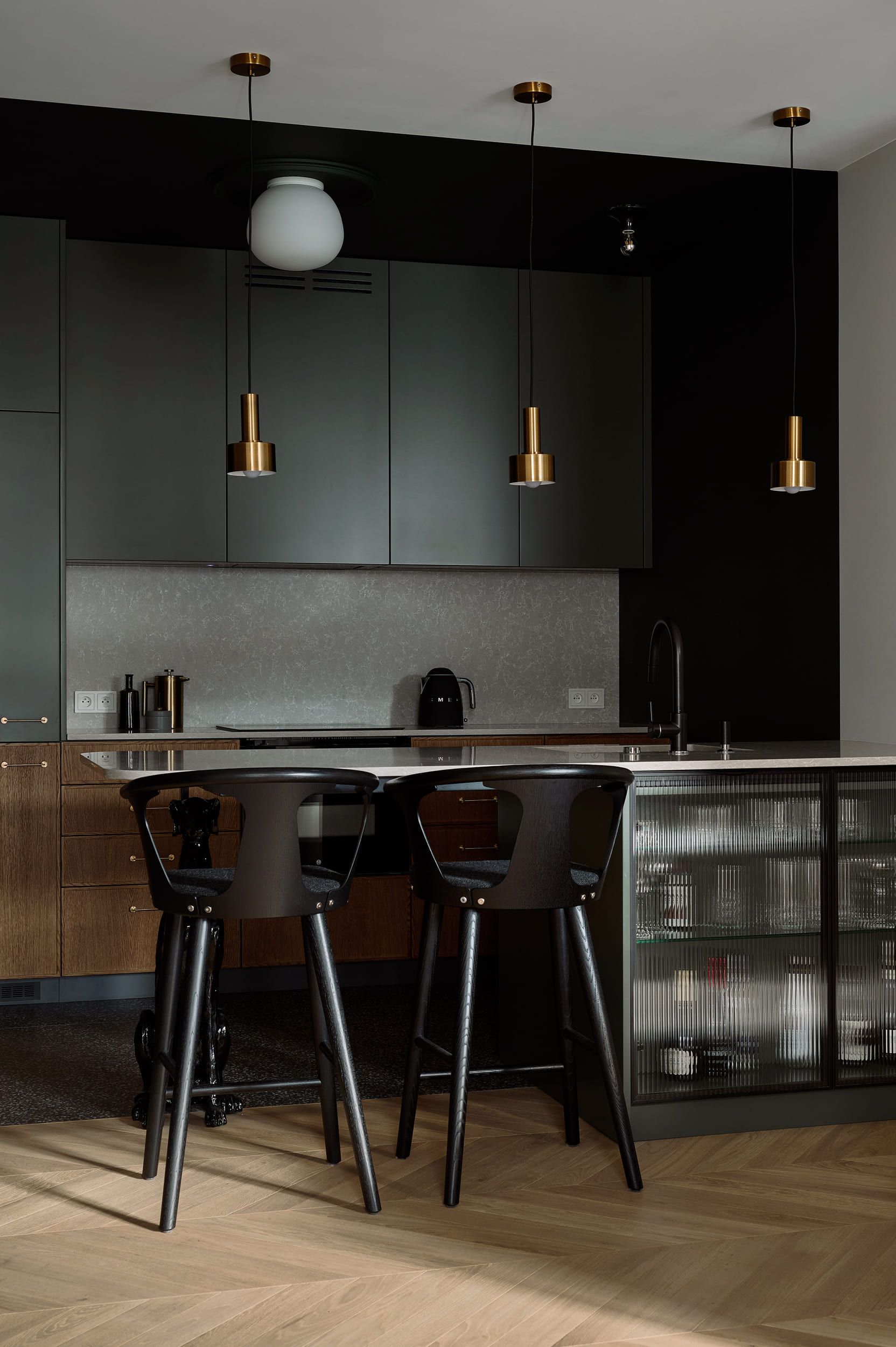 Mieszkanie otrzymało zupełnie nowy układ, wydzieliliśmy mały, uroczy gabinet do pracy zdalnej. Pozostałą powierzchnie otworzyliśmy na kuchnię tworząc całkiem przestronny salon. W mieszkaniu znajdziemy dużo ciekawych detali i połączeń materiałowych, które zachwycają nasze oczy za każdym razem kiedy patrzymy na zdjęcia z realizacji. Mimo trudów podczas remontu, powstało wyjątkowe i przytulne wnętrze.